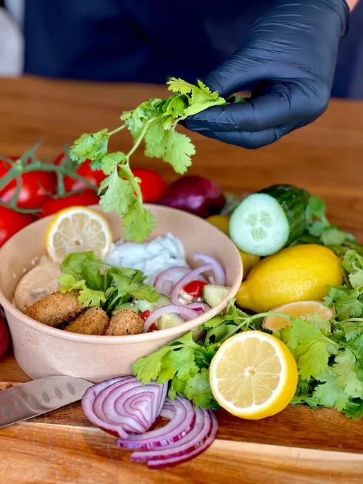 La spécialité de Potferdoum ? Le falafel maison, croustillant à l’extérieur et fondant à l’intérieur, décliné en assiette, en dürüm, en burger ou en barquette.